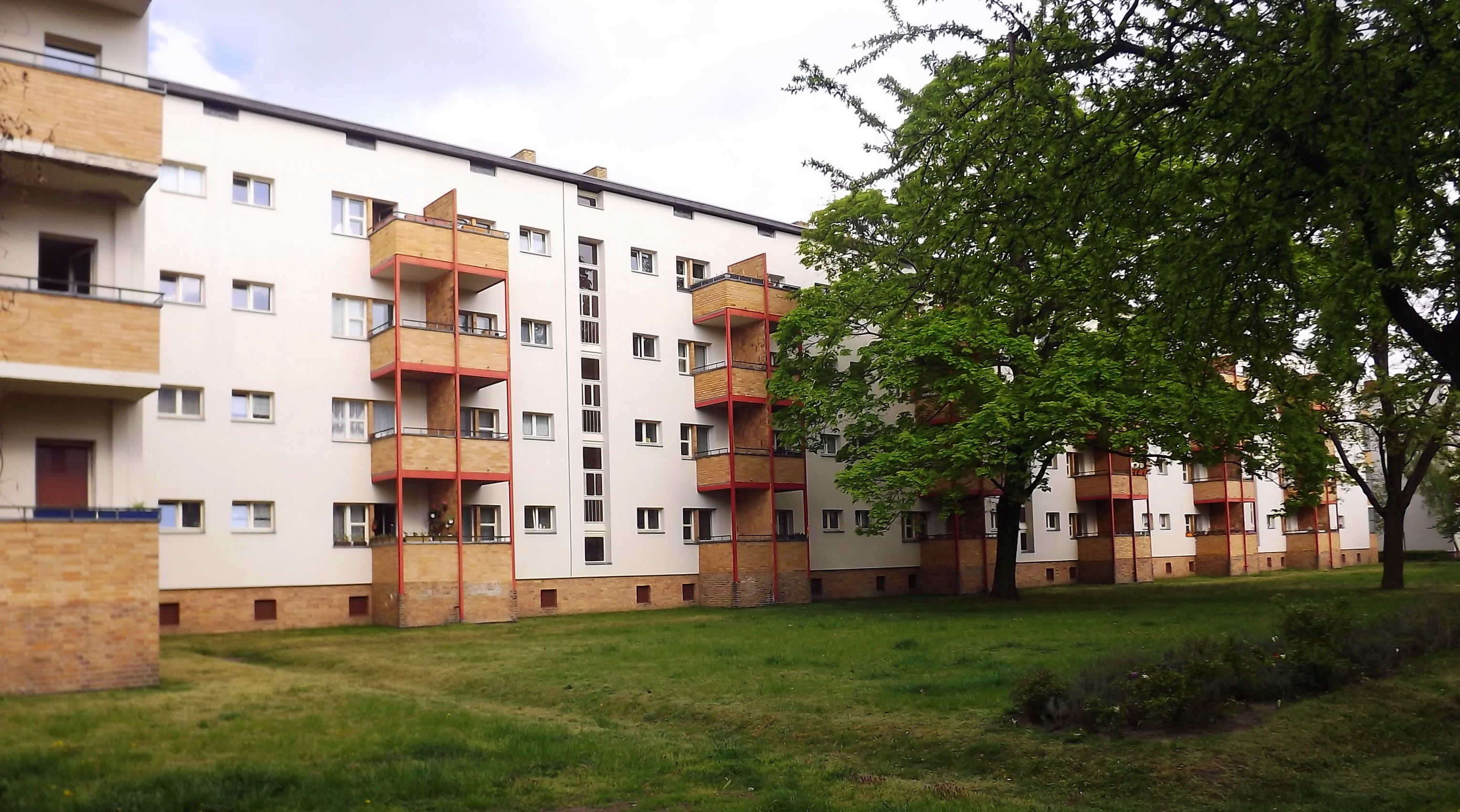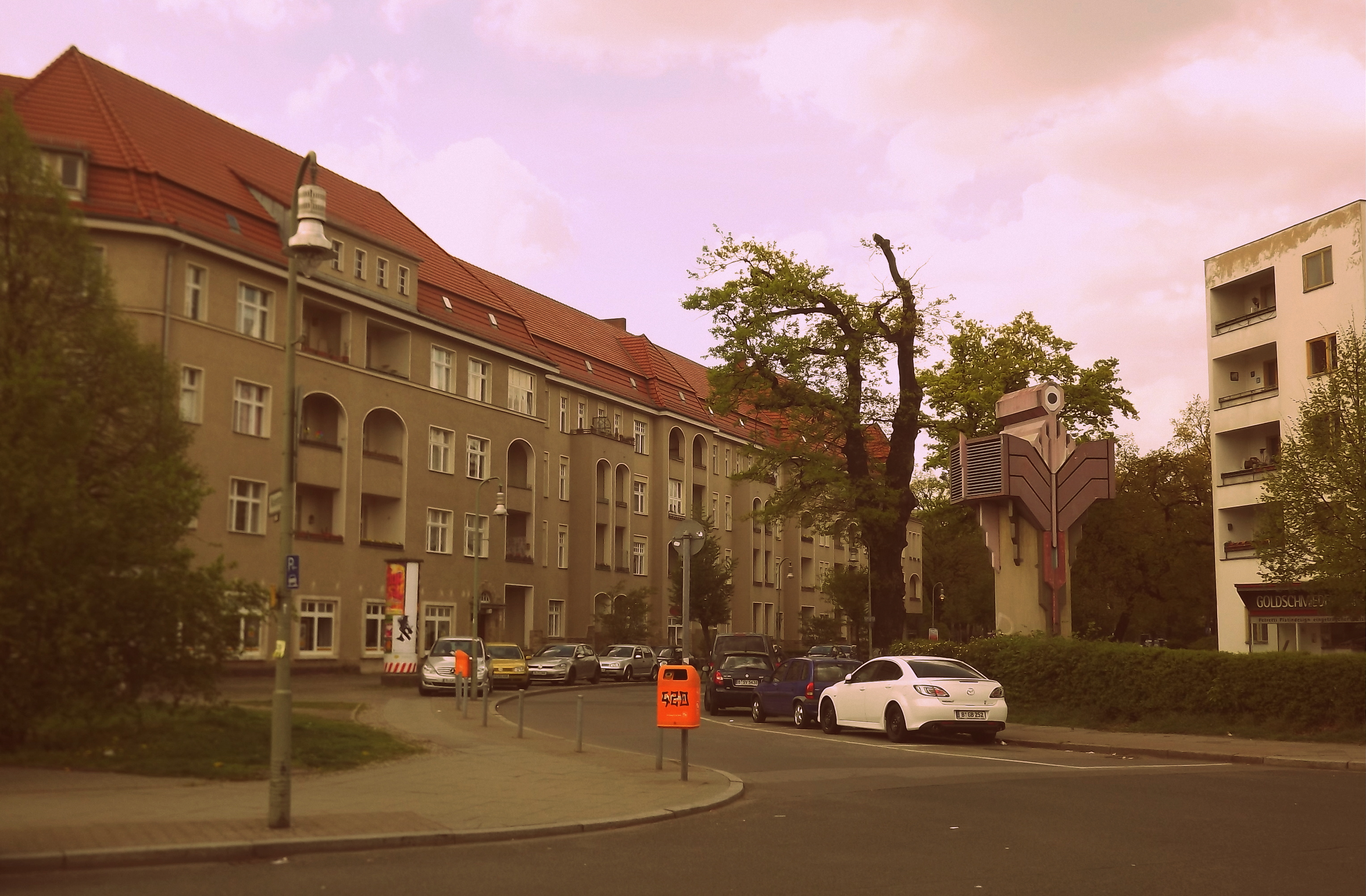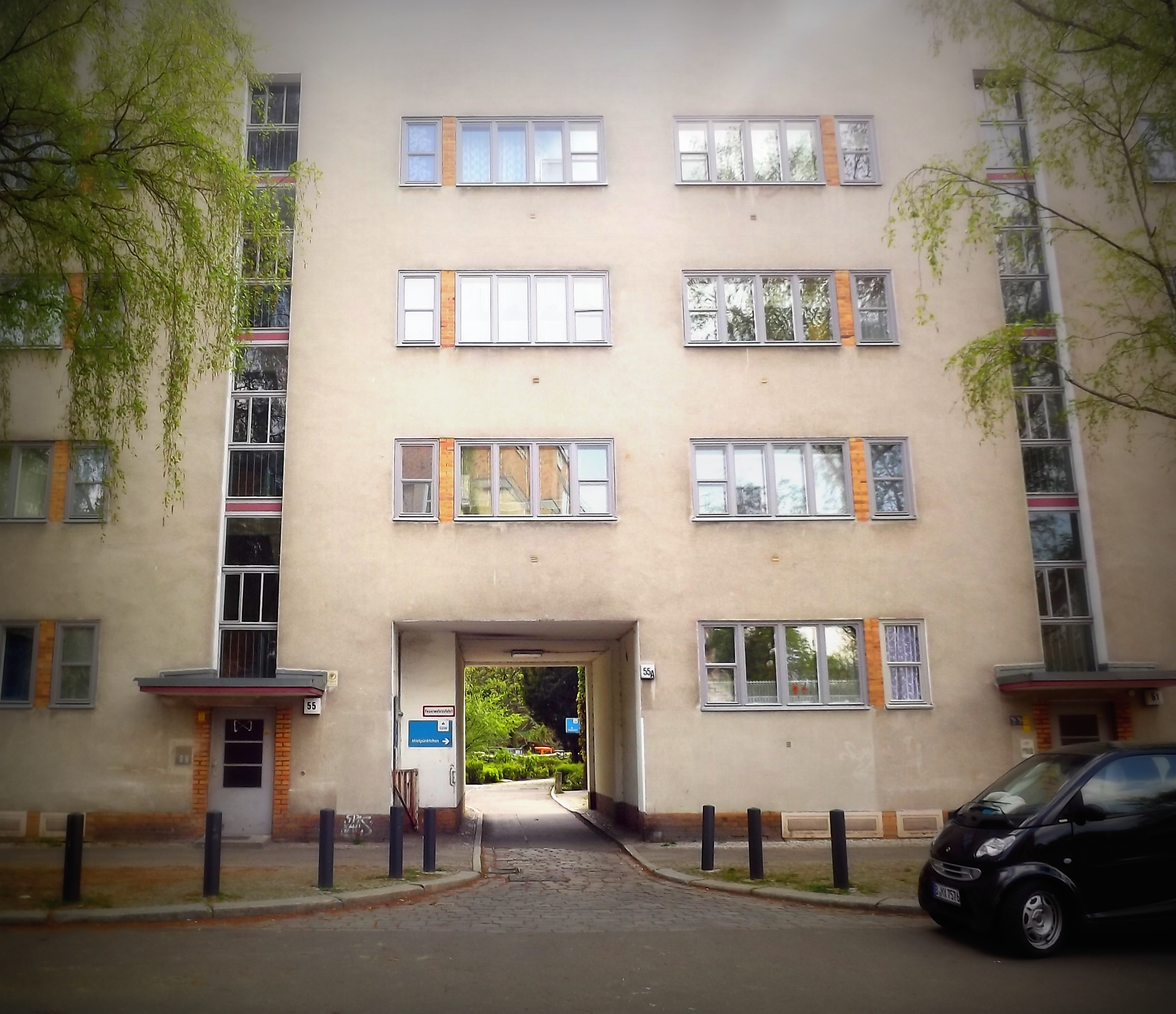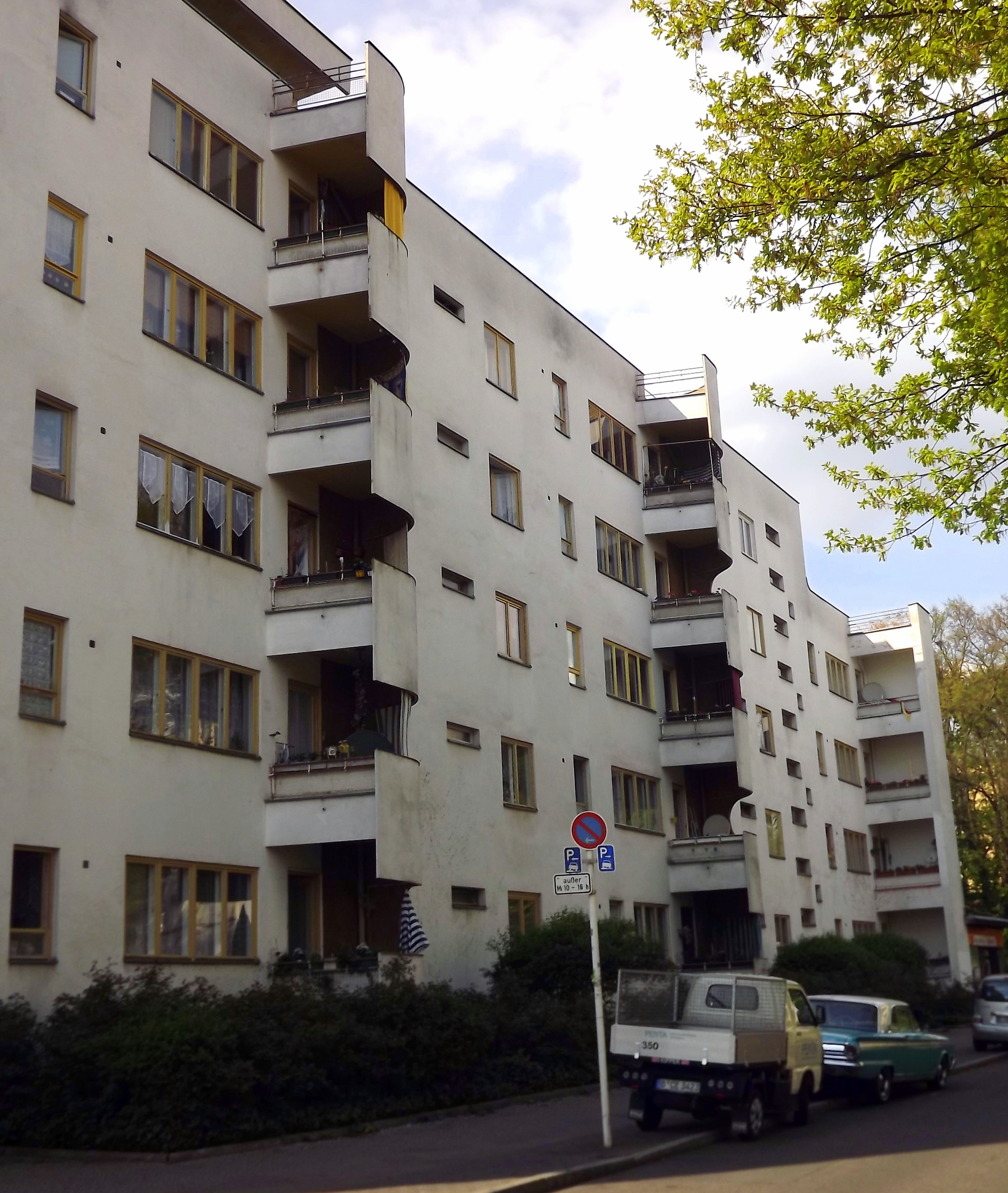 Одна из проблем, которую тогда пытались решить,- это отсуствие дешевого и приятного жилья для пролетариата. И вот в 1927 архитектурному объединению «Der Ring» («Кольцо») заказали построить квартал для рабочих заводов «Сименс». В это товаричество вошел просто весь цвет архитектурного сообщества того времени: братья Макс и Бруно Тауты, осноатель школы «Баухауз» («Буухаус», как их упорно называла одна тётя по телевизору) Вальтер Гропиус, Людвиг Мис ван дер Роэ, Эрих Мендельсон, Мартин Вагнер и многие другие. Возгравлял строительство сам маэстро Ганс Шарун. в общем, как вы понимаете, компашка подобралась просто убийственная. В результате получился охраняемый ЮНЕСКО памятник архитектуры на 1379 квартир, и некоторым нашим современникам повезло в них жить.