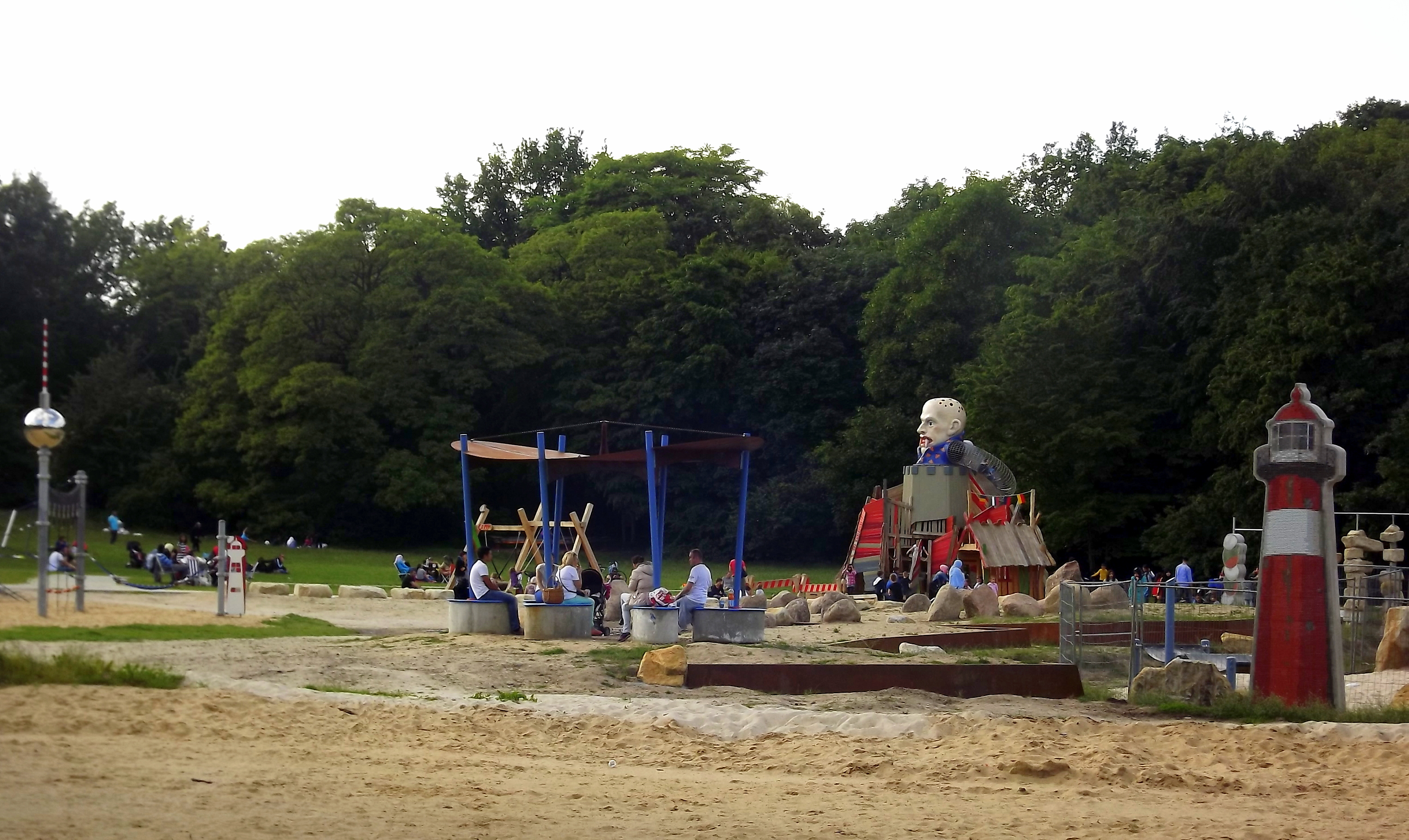 В качестве постскриптума продемонстрирую безумную детскую площадку, на которой и телевизионная башня, и дедушка Ленин, и пока еще виртуальный маяк.