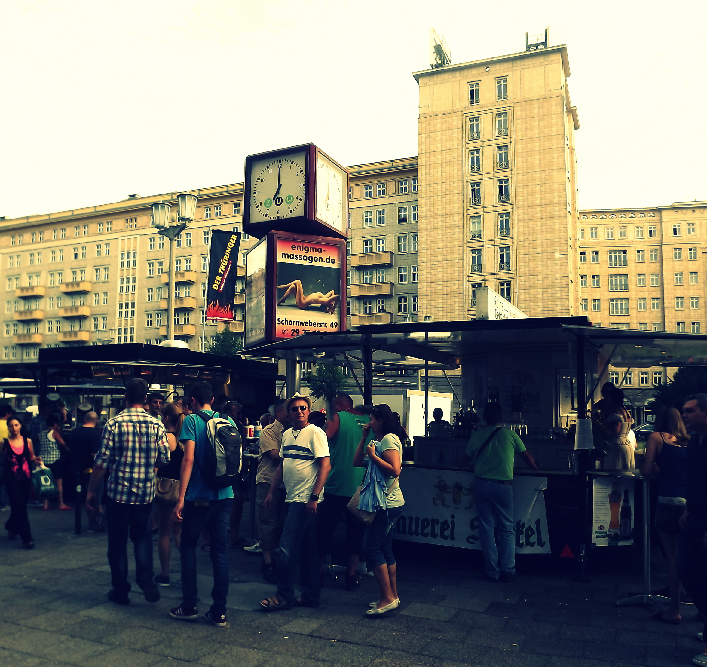 Второе мероприятие из нашего пивного забега было куда более масштабным. Это ежегодный международный пивной фестиваль, на котором предсталено около 2,5 тысяч пивных сортов из 87 стран мира. Место проведения — одна из самых красивых, с моей точки зрения, Берлинских улиц — Карл-Маркс-Аллее (Karl-Marx-Allee).