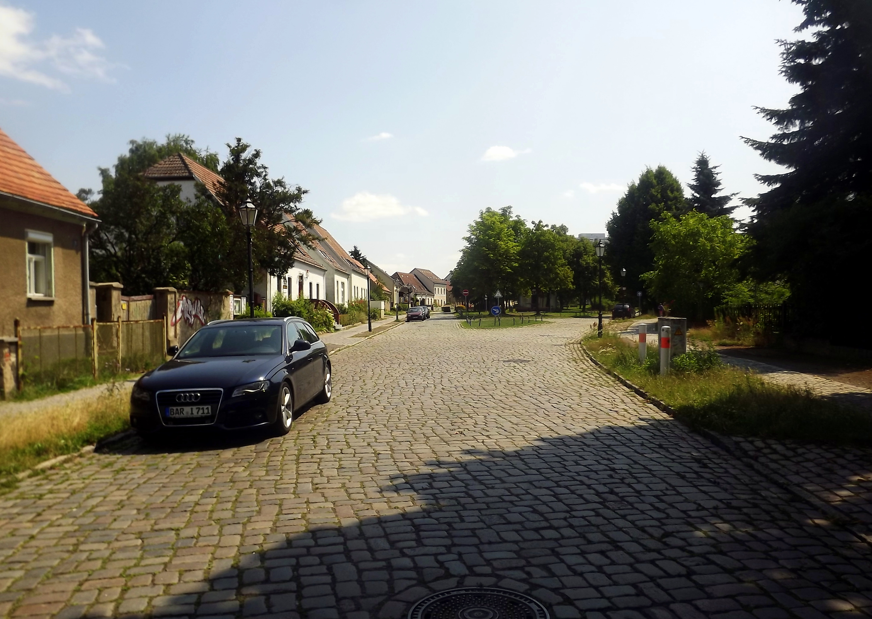 Изучив богатейший водочный ассортимент супермаркета, мы продолжили наше путешествие и через непродолжительно время оказались в самой настойщей деревне Альт-Марцан (Alt-Marzahn). Каким-то чудом этот милейший архитектурный ансамблик сохранился и продолжает умилять случайных путников по сей день.