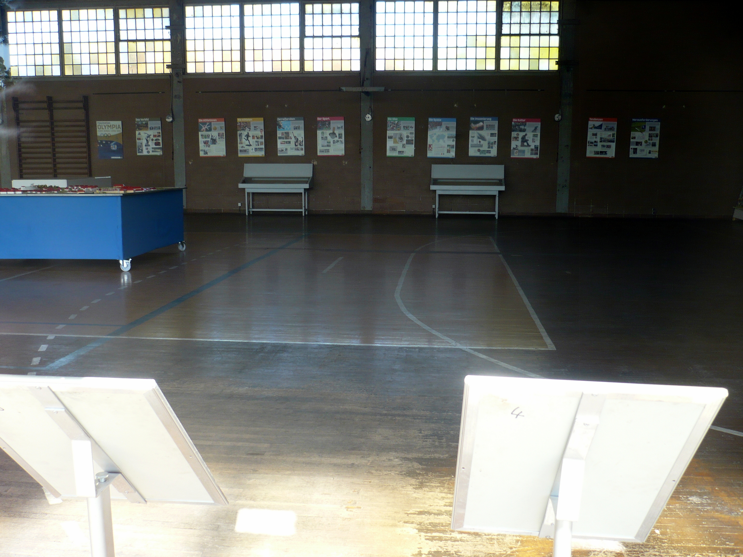 Ни в бассейн, ни в зал не пускают без экскурсии, которая является меропрятием довольно редким, поэтому внутреннее убранство этих зданий нам можно было увидеть только через окно.