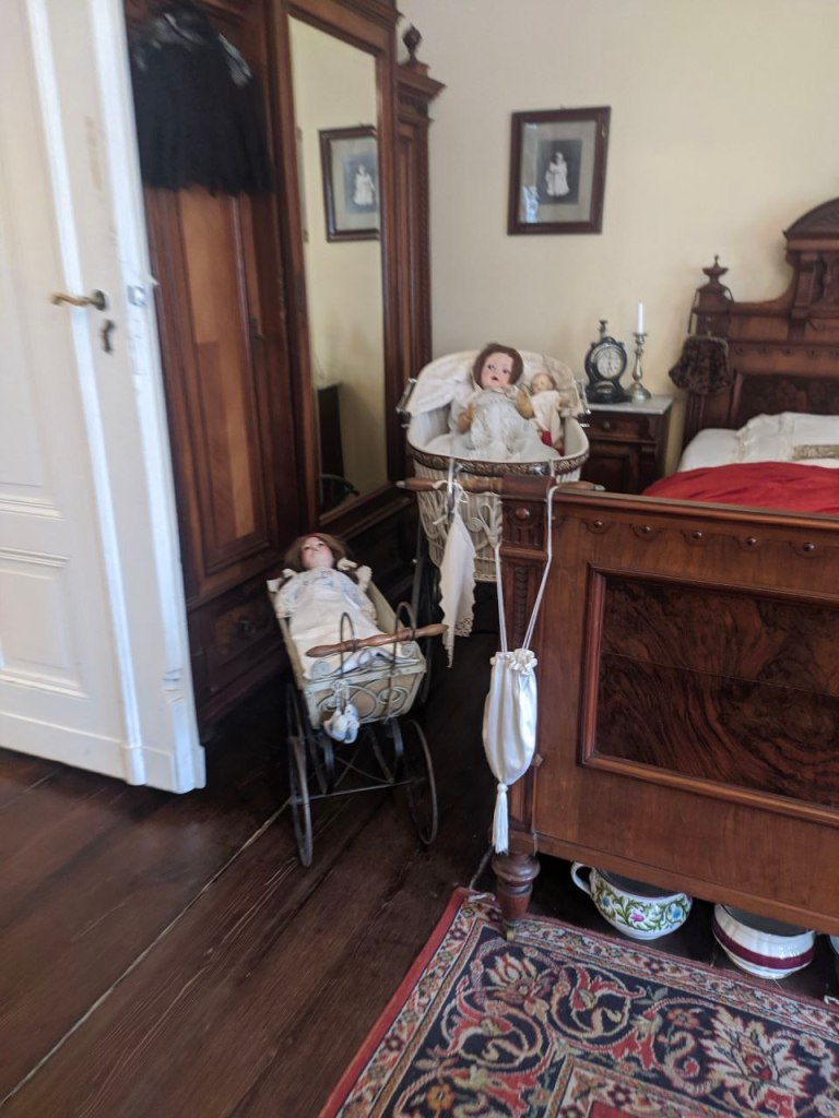 Также рекомендую к посещению музей эпохи Грюндерства, который после объединения Германии весьма неплохо восстановили. Мы были удивлены тому, сколько интересных вещей использовали в то время. Музыкальный шкаф, чашка для обладателя больших усов, стулолестница, пианола, специальная держалка для карманных часов (нельзя же их просто на стол бросить!) — всё это и еще многое-многое другое занятное можно найти в Шарлоттином музее.